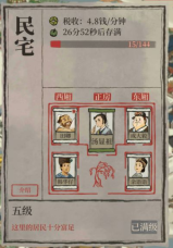 没错,民宅的好处在于,其他水井、画院都是每次要点生产才能出铜钱,而民宅只要你设置税课司,它就会一直自动帮你收铜钱。所以尽可能都升满级