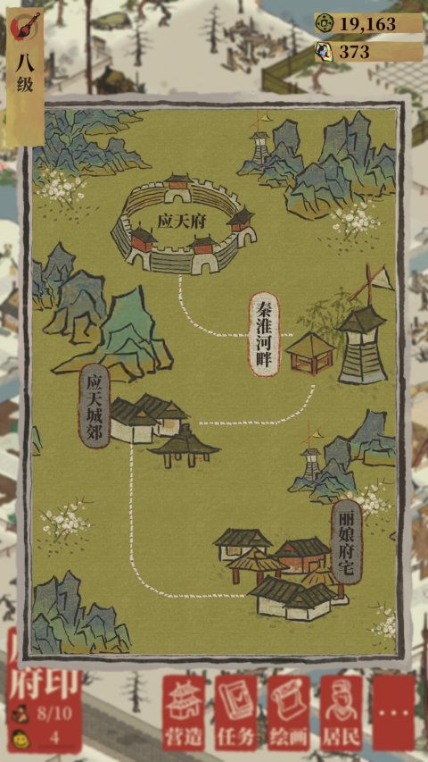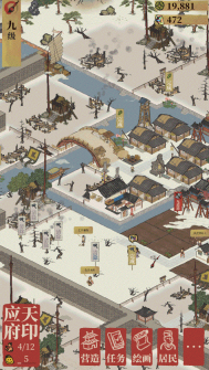 从应天府一块小小的农田开始,经营赚钱,直至修造出繁华的商业中心、热闹的住宅群居,建立发达的货运路线,让居民安居乐业,帮他们赶走小偷、流寇等刁民,结合江南水乡特点,在不同城市打造不同风格,解锁专属建筑,在桨声与灯影中沉浸城市的风情。