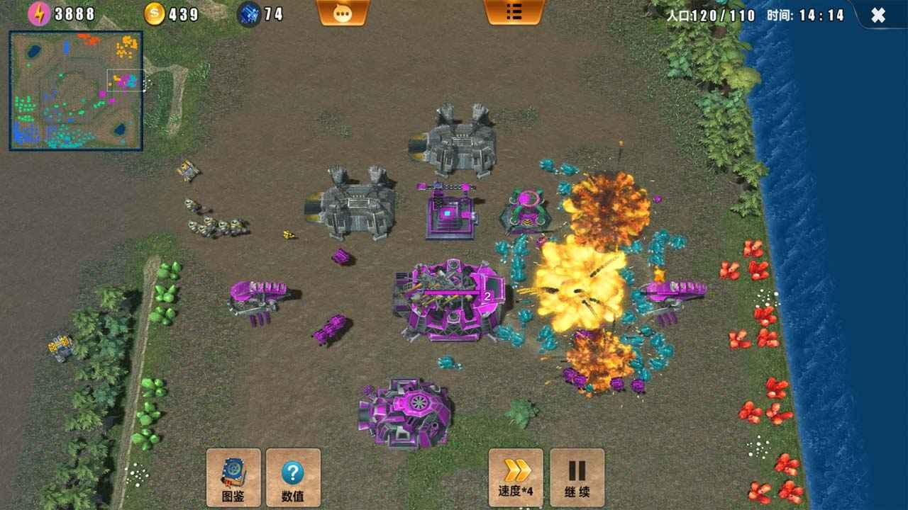 这是一款支持3v3在线对战的即时战略(RTS)游戏。与传统的电脑RTS游戏相似,玩家需要通过收集资源、建造建筑、生产军队和发展科技,最终目标是摧毁敌方基地以获得胜利。