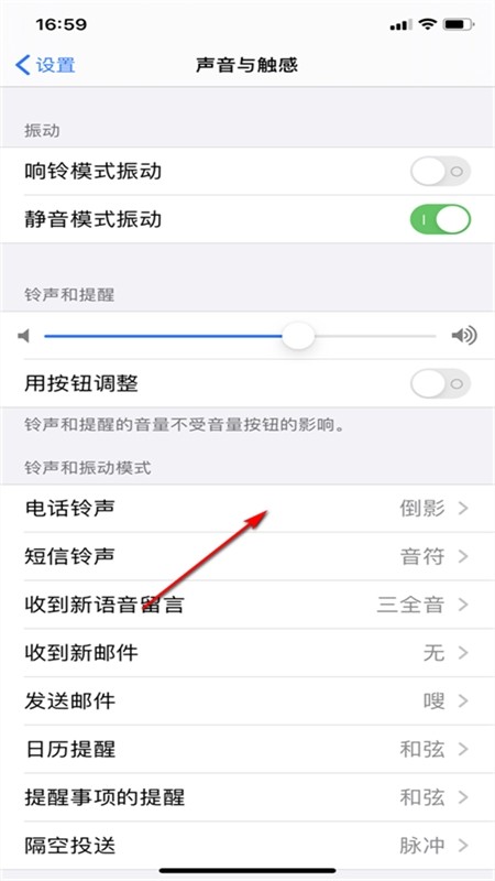 7、在【声音与触感】界面中点击【电话铃声】进入设置铃声。
