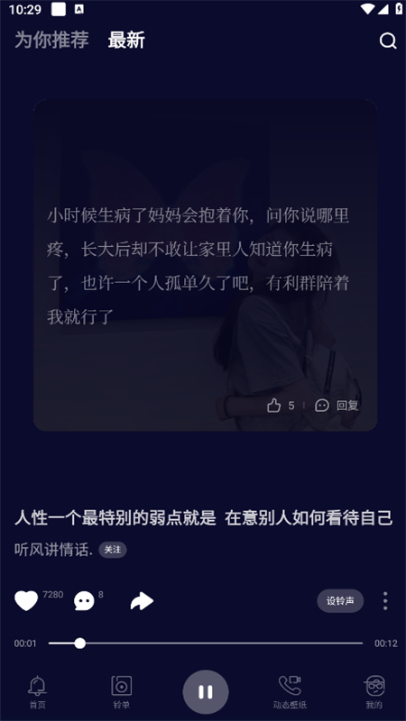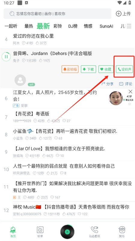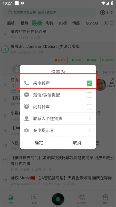 音乐、情感、语录、口白、Mc、电音、DJ、串烧舞曲、嗨歌、火热的快手抖音短视频点下就播放,一键完成设置铃声,超简单呢。
