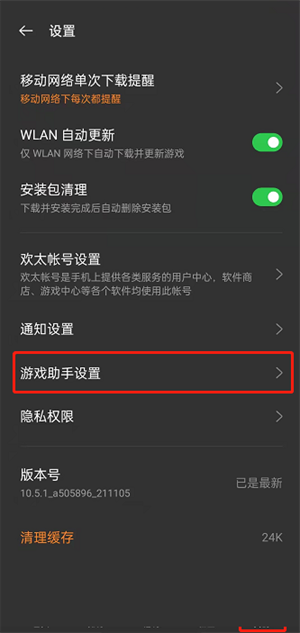 2、选择游戏助手设置。