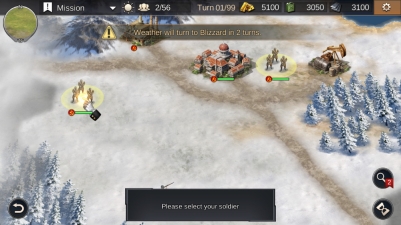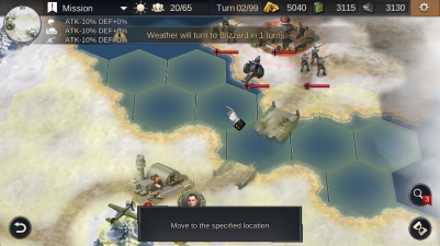 3、每次移动的距离都有所限制,一回合内所有的小兵和坦克只能移动一次,在完成攻击后,我们需要点击下方的按钮来结束这一回合。