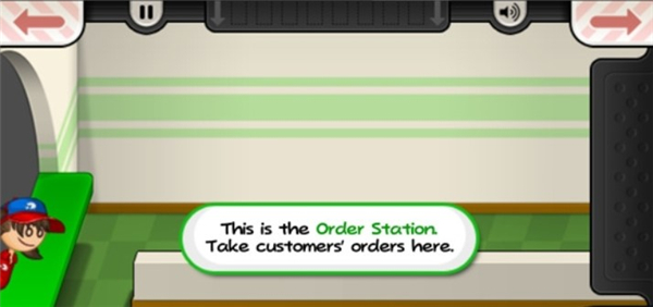 -顾客将前往屏幕左侧的订单柜台,记录下客人所要点的披萨口味。同时店铺升级后可以接送货到门的订单。