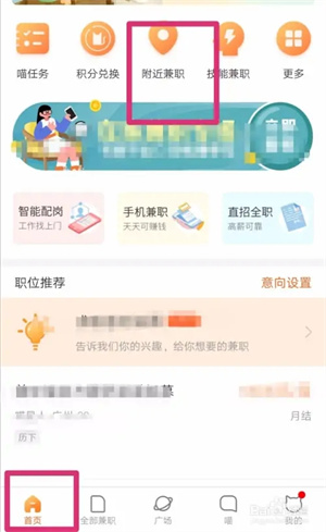 登录账号之后,进入首页,点击附近兼职,找到适合自己的兼职。