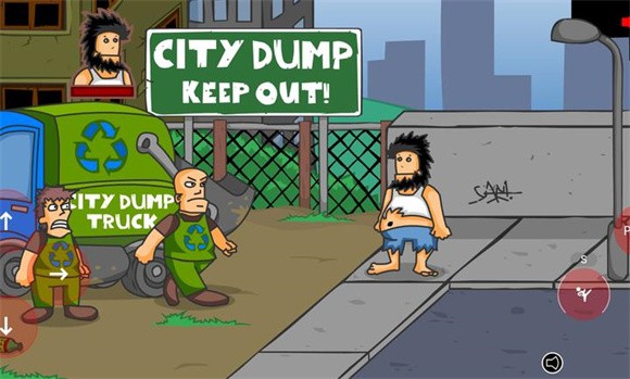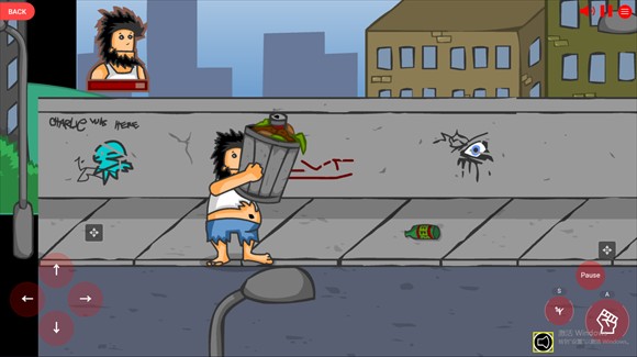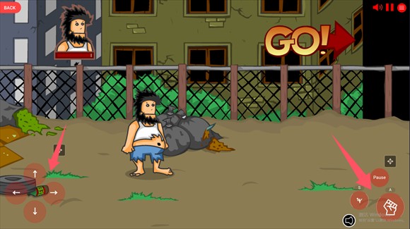 2、左边的按键控制流浪汉移动,右边的进行攻击
