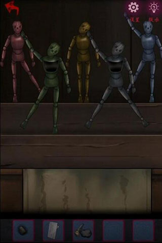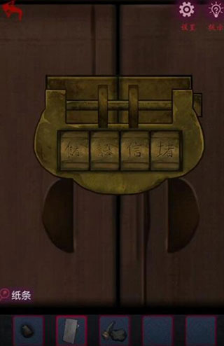 10、开启后,在桌上拿到瓷器,根据门上的画在墙上的砖块后输入密码,打开获得提示。