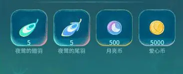 夜莺的翅羽*5 夜莺的尾羽*5 月亮币*500 爱心币*5000
