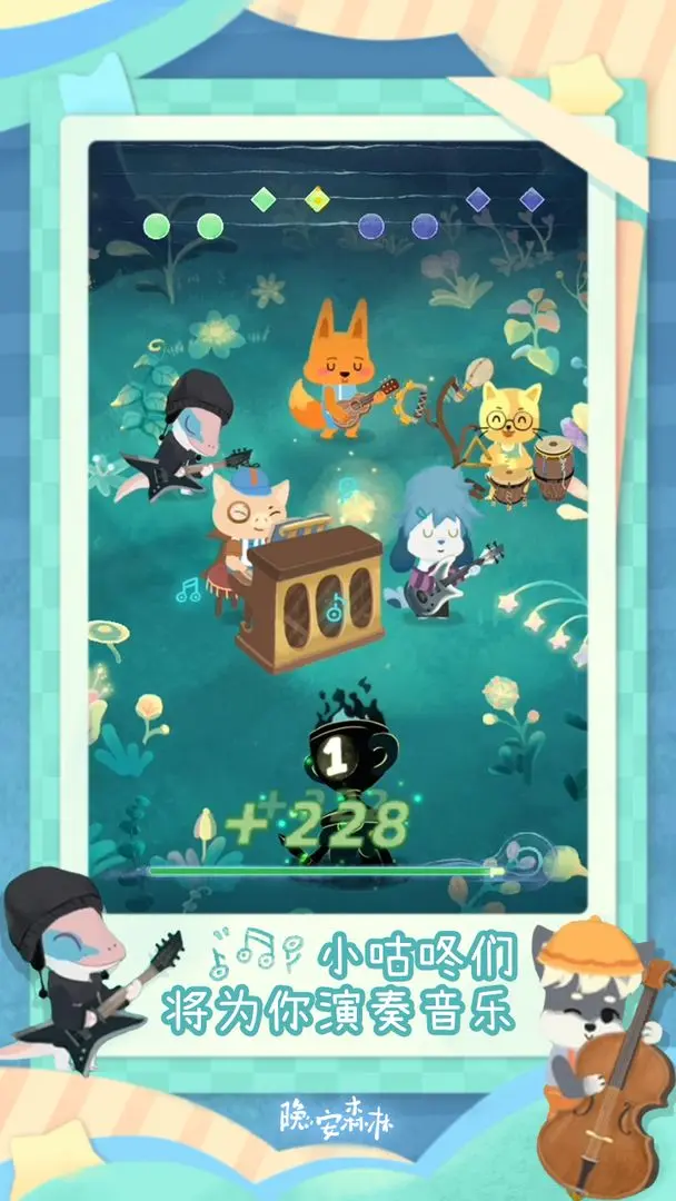 寻找内心的梦魇,然后和咕咚们一起治愈它们,让晚安森林恢复梦幻浪漫的生态环境,