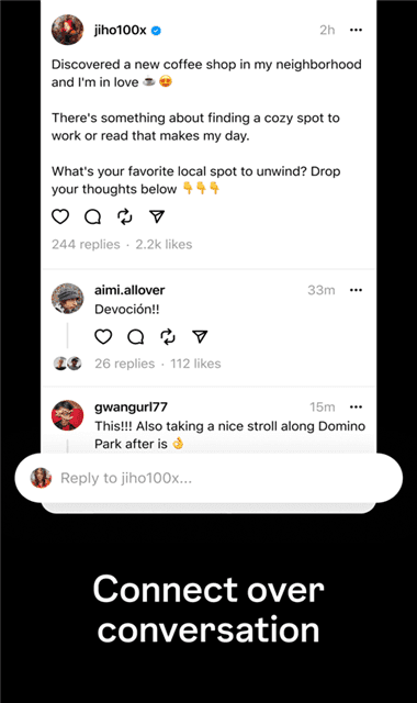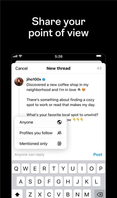 Threads是一款专为社交设计的聊天应用。这款软件界面简洁、体积轻便,集成了丰富的功能,如动态分享、话题讨论和投票等,便于用户之间的互动交流。此外,该软件还注重个人隐私保护,所有用户都需经过实名验证,保证了信息的真实性。同时,它支持多种聊天模式,包括语音通话、视频聊天和文字消息,让用户能够随时随地与好友保持联系。感兴趣的朋友们快来体验吧!