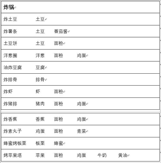 通过不同食材和厨房用具组合的数百道菜肴。