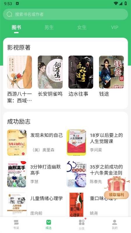 2. 精品丰富:各种类型的图书资源一应俱全,搜索你想要的,阅读你所爱的。
