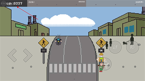 1、控制角色移动:按左右方向键控制角色在马路两侧移动。
