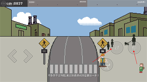 3、引导孩子过马路:当孩子出现在马路对面时,控制角色向孩子招手,示意他们过来。当孩子到达马路另一侧时,你将获得分数。