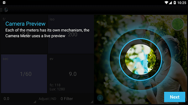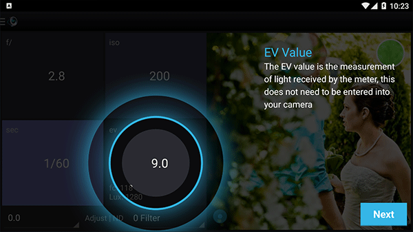 5、使用相同的曝光选择器PhotoBuddy,你会感觉到在家里;拾取器允许您在测量场景后更改f-stop,快门或iso值,而无需更改曝光。