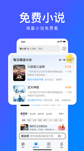 全新的小说书城,依托搜狗卓越的搜索技术,汇集了数百万部高质量的小说资源,助您轻松找到心仪的书籍,随时随地享受阅读的乐趣。我们不断优化小说阅读器体验,提供离线阅读、舒适的阅读界面以及即时更新功能,并支持多种小说网站的阅读模式。