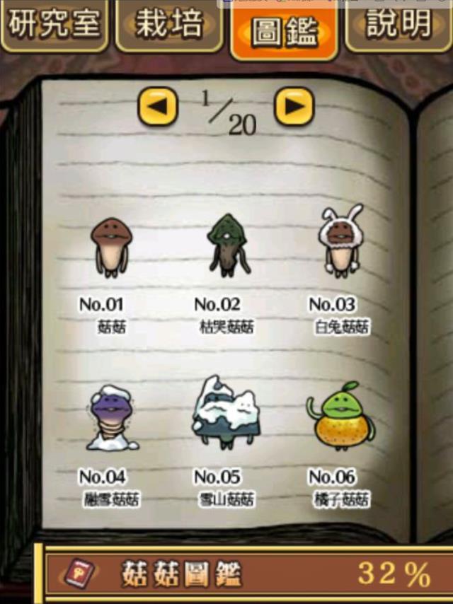 2.在《NEO菇菇栽培研究室》中,还有着图鉴玩法,感染了病毒的蘑菇会产生异变,变化成为各种不同的外形,玩家可以在众多滑子菇中排查出来加以收藏。