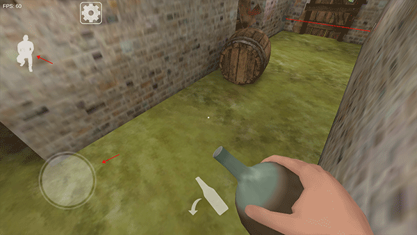 2、通过滑动摇杆控制人物进行移动,点击左上角的“人物”可以控制人物下蹲。