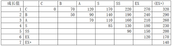 基本说明:在培养人物时,根据人物当前五维数值会进行一个评级(档位),根据评级不同,人物每升一级增加的属性值也不同。(成长数值)人物的五维数值越高,档位越高。
