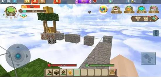 1打开背包,利用收集到的圆石或其他方块建造一条阶梯,这样你就可以沿着阶梯前往其他空岛。每个空岛上都有一个藏有丰富奖励的宝箱,等待你的探索!