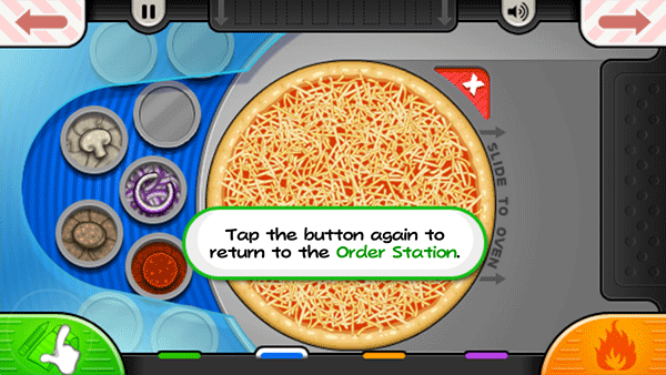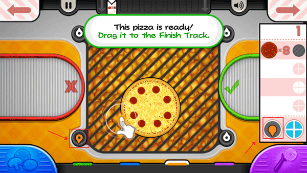 9、在烤披萨时要注意控制好温度,一旦左下角的“火”图标变为橙色,就可以把披萨移到切割区进行切片了;