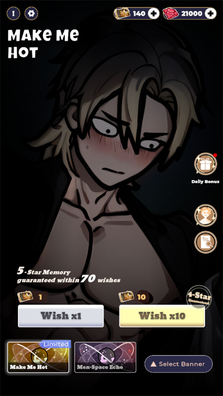 Lovely Wisher是一款由玩家自制的恋爱向抽卡手游,整体玩法类似于《恋与深空》,但加入了更多轻松搞笑与个性化元素,带来一种既浪漫又充满欢乐的互动体验。游戏采用唯美的二次元立绘风格,每位角色的形象都精致帅气,风格各异,从冷峻的天才型到傲娇的少年型,再到幽默毒舌型与温柔治愈型,应有尽有。玩家可以通过抽卡系统收集这些风格迥异的角色,体验到“开卡瞬间心跳加速”的乐趣。不同稀有度的角色不仅在外形上有差异,在语音互动、剧情支线与性格表现上也各具特色,让玩家在每一次抽卡中都能收获新鲜感与惊喜。