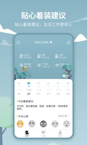 贴心提示用户今天温度情况,提示温度情况的同时还提供了穿衣建议;