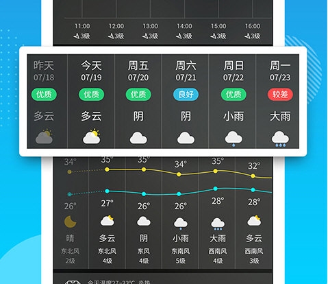 切换不同的天气观察模式,支持自由切换趋势或列表模式来查看天气;