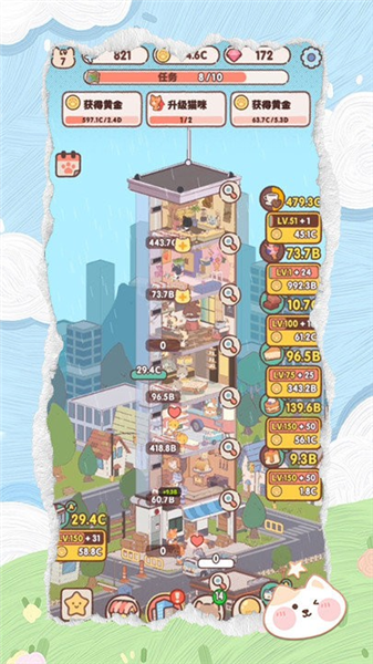 3、游戏内包含多种萌趣的猫咪形象,玩家能够借助完成任务、购买等途径,收集各式各样的猫咪。