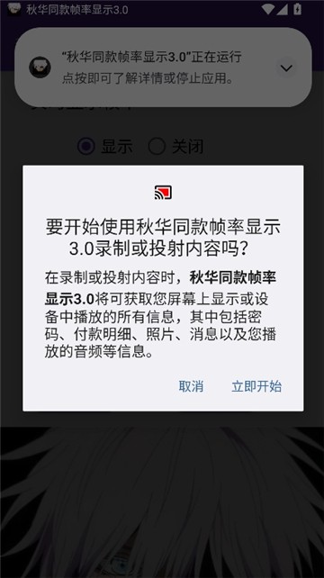 1、在本页面下载秋华同款帧率软件,安装后打开并授予悬浮窗权限。