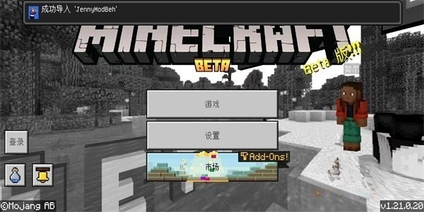 7、返回《我的世界》的启动页面,你会看到“JennyModBeh”已成功导入。