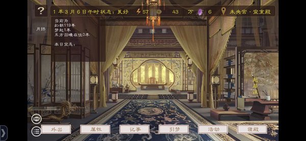 回:小选当天,辰时之前(也能够稍后再去延迟时间去找妃子),召见妃子来本人宫殿或者妃子宫殿,提示去选秀时能够带上妃子