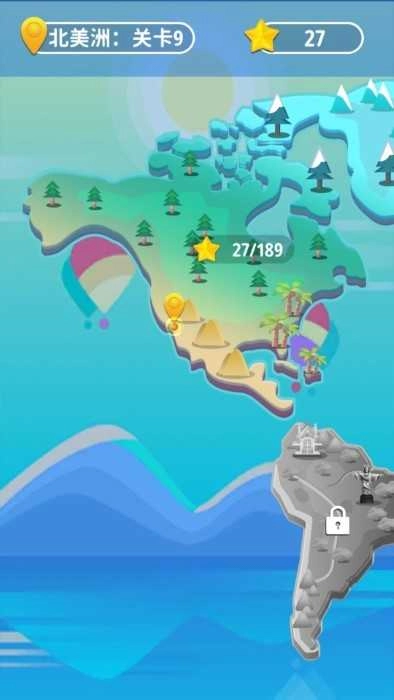 1、打开应用,在【北美洲:关卡9】地图,选对应区域进入消除关卡。