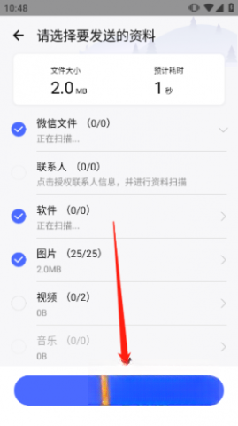 步骤三:挑选待传输的文件类型,一旦搜索到新手机,传输即刻完成!