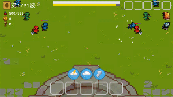 5、每泼抵御怪物攻击即可获得技能,玩家需要再三个技能中选择一个;