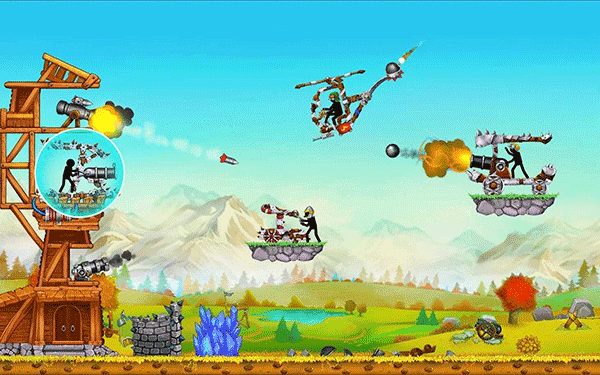4、帮助火柴人对抗敌方火柴人以守卫城堡,粉碎敌人的枪支。