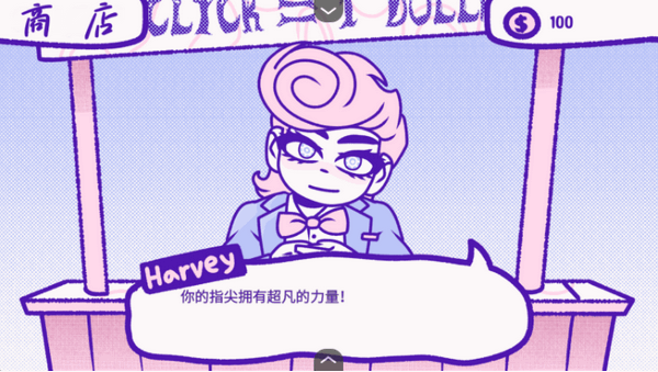 条件:使用锤子、剪刀等道具点击哈维,但最终不击杀他。操作:购买中等伤害道具加速金币获取,最后停止点击并退出商店。