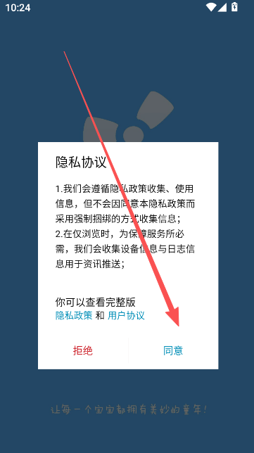 1在打开并进入软件之前,请完整查看使用隐私政策以及用户协议部分,确认无误后点击同意方可进入。