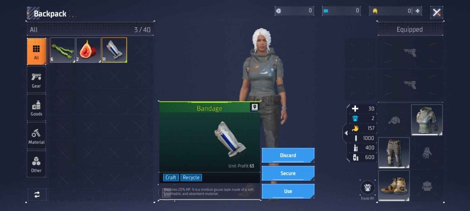 5、另外,点击背包还可查看获取的道具,以及给角色更换武器装备。