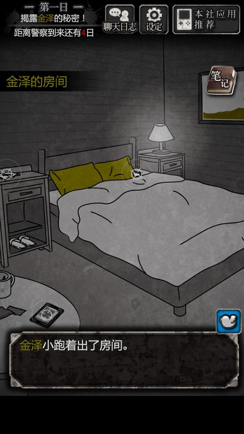 3、去三楼金泽的房间与金泽对话,触发进程“可以查看金泽的房间了”;