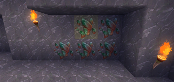 在洞穴里找到的概率处于中低水平。需使用黄铜镐或者更优质的镐才能获取琥珀。其经验输出与红玛瑙宝石一致。