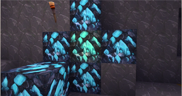 在洞穴中找到的几率很低。使用铁或更好的镐来获得钻石。用于工具、盔甲等。