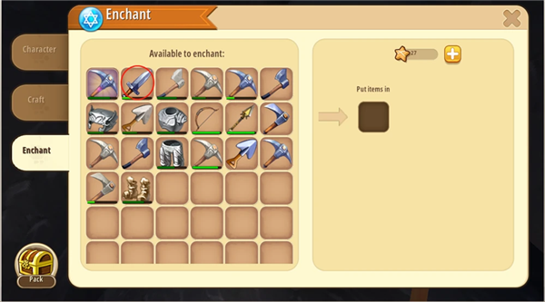 2、然后单击/点击您想要附魔的装备或武器。单击“附魔”按钮可为武器/装备提供更强的增益。