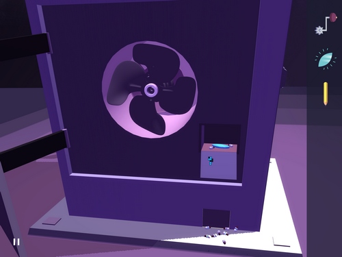 8、调查柜子左侧,取下电风扇里的把手,然后拾取右边掉出的小栓子和第二个发光的物体。暗格上的图样是柜子正面密码三部分之一,三部分密码都齐了。