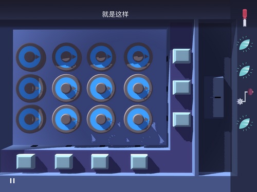 15、按下方的按钮可以锁定一列的转盘不动,按右侧的按钮锁定一行的转盘不动,我们需要将所有的指针调成统一个方向,等他们全部转到右侧即可顺利学习机关。
