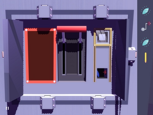 12、拉闸会让房间变形,拉闸先向下拉,取出右上方的钥匙,然后拉闸向上拉,用钥匙打开右下方的暗格,得到第三个发光的物体,最后再将拉闸向下拉。
