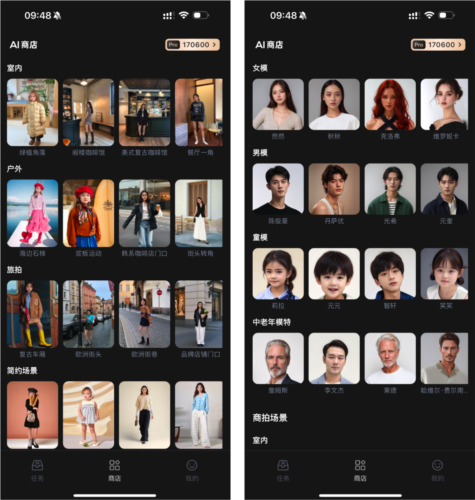 商品套图:支持在【同一场景下】轻松更换模特、服装、拍摄角度,完成高保真套图拍摄