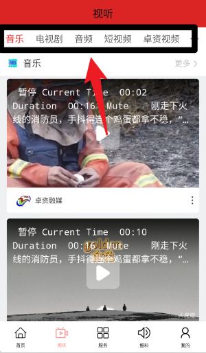 3、进入“视听”板块,就能依据分类,从音乐、电视剧、音频、短视频等多媒体资源中挑选,进而在线收听或观看。