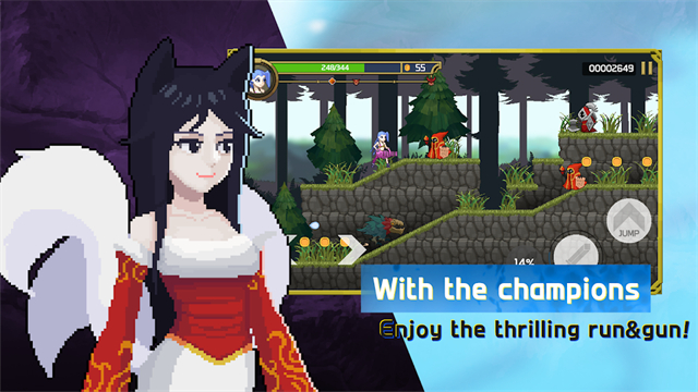 像素英雄联盟手游正版是一款以英雄联盟为背景制作的横版动作闯关玩法手游,这款游戏采用了经典复古的2D横版画风设计,虽然画风比较简单,但是游戏的玩法十分新颖而独特。操作简单易上手,有点类似于超级魂斗罗,相信一定可以给大家带来别样的游戏快感。这种独特的游戏设定,将带给玩家丰富的挑战和乐趣。如果你喜欢复古风格和动作游戏,那么这款游戏绝对不容错过。快来下载体验吧!
