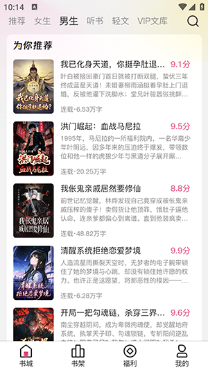 30万册图书书城,包括了各种精品出版物与网络原创小说。
